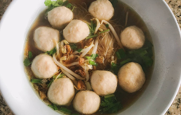 - ก๋วยเตี๋ยวลูกชิ้นเนื้อ/เอ็น (ราคา 40 บาท พิเศษ 50 บาท)